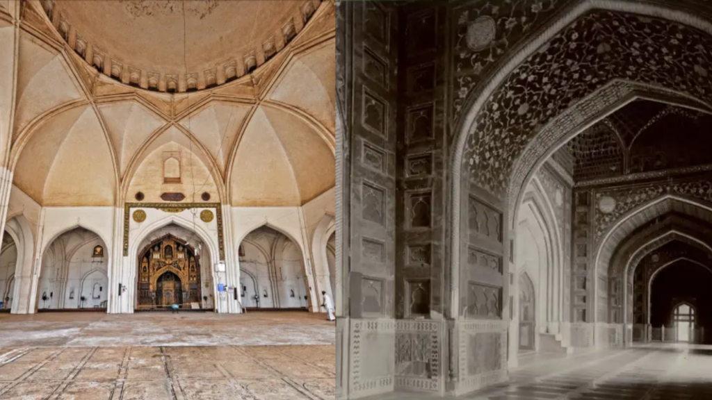 The Jama Masjid, built by Emperor Shah Jahan in Agra in 1648 for his daughter Jahanara Begum, is considered one of the largest and most important mosques built during the Mughal era. It is situated adjacent to the Agra Fort, which makes it a fantastic representation of Mughal architecture and the support provided by the Mughal Empire.